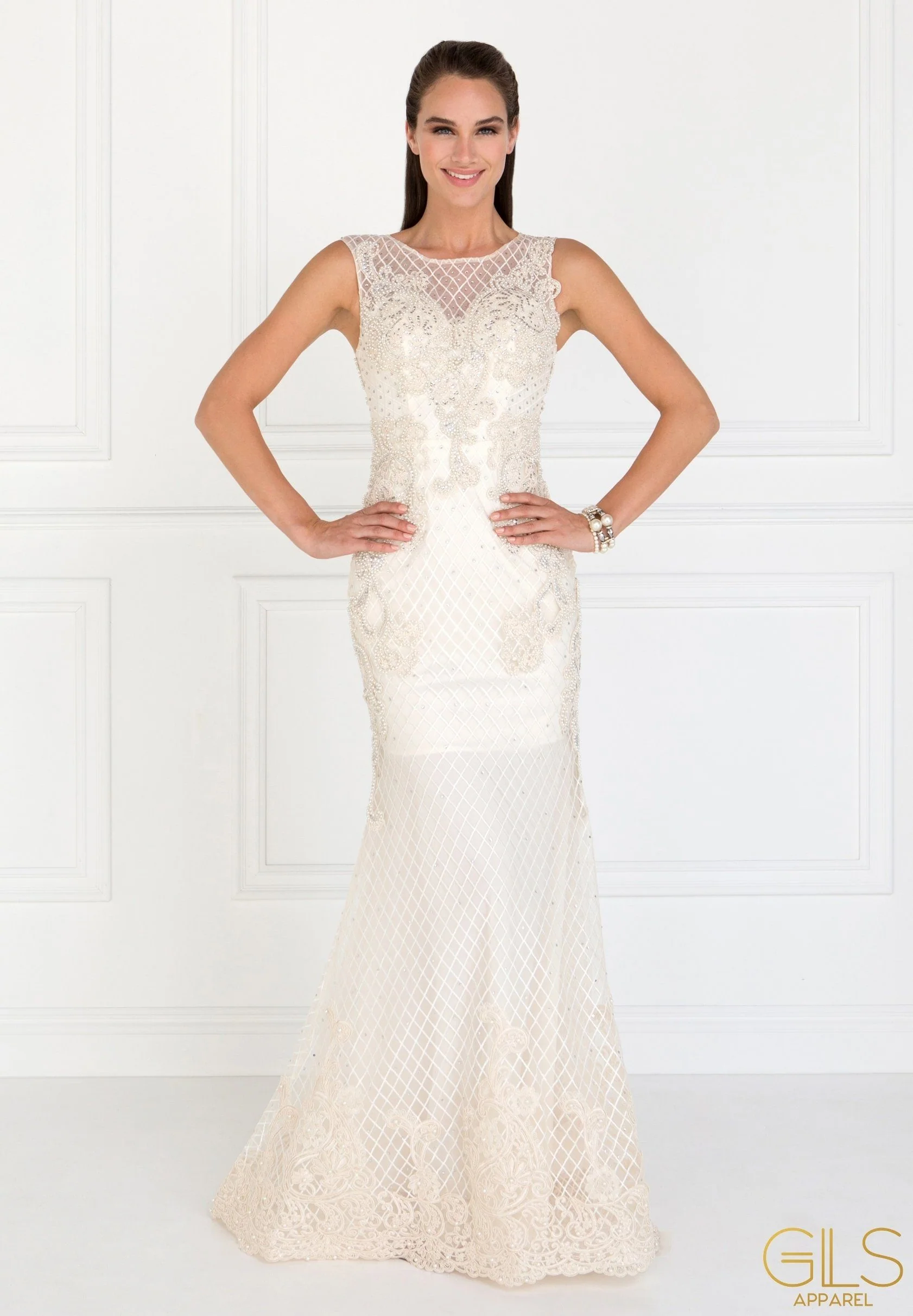 Be picture-ready in this long floral embroidered mermaid dress by Elizabeth K GL1536. Sleeveless full length dress with a boat neckline and a mermaid silhouette. Has 3D floral embroidery work through out the dress and beaded jewel detail. Perfect for any formal event!