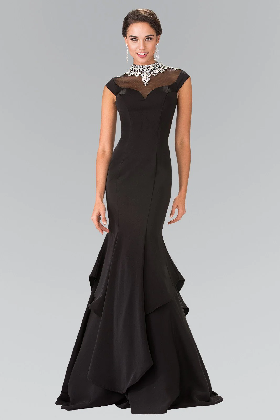 Long Illusion Mermaid Dress with Beaded Neck by Elizabeth K GL2242