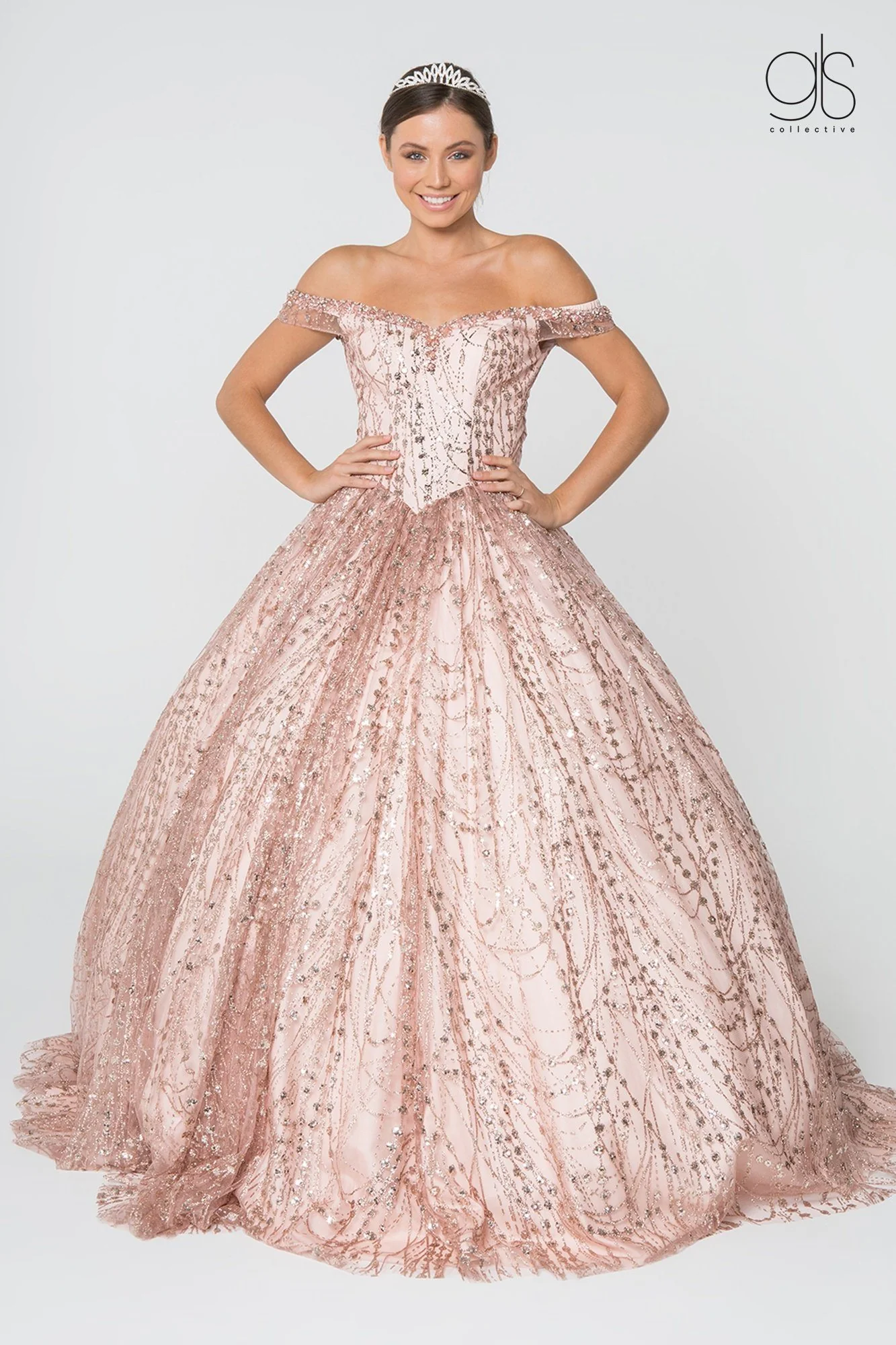 Off Shoulder Glitter Ball Gown by Elizabeth K GL2831